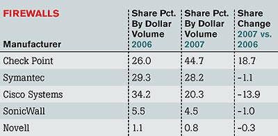 Check Point Software Technologies has long been known as an elite firewall vendor. So has Cisco Systems. So it's surprising to see the former's firewall sales through distribution jumping significantly while the latter's dropping precipitously.