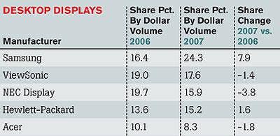 Samsung was one of the few vendors to post a substantial gain in market share in 2007. Vice President of Marketing and Commercial Sales for the IT Division Chris Franey attributes that to strong product and channel propositions. "Let us help you sell larger displays that have a higher [average selling price], products that offer unique solutions, like high-resolution displays with unique features," he said. [READ MORE]