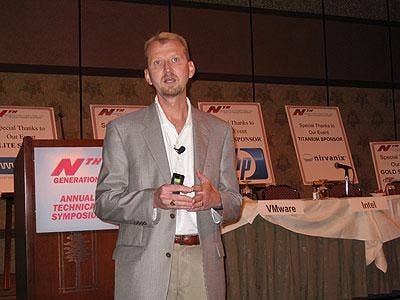 The general sessions were kicked off by John Randall, vice president of marketing at Nth Generation. He introduced the day's content targeted at an audience consisting mainly of Southern California enterprise IT administrators and CIOs. "You don't have to fly to Gartner [for this kind of content]," Randall said.