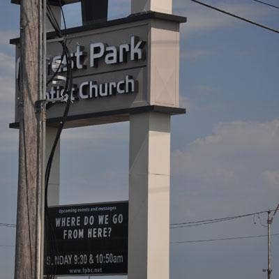 The message board on a church outside the impacted area sums up the feelings of many Joplin residents.