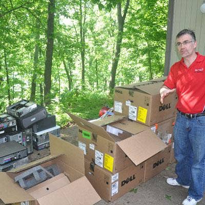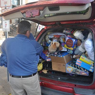 Hedin helps unload a truck full of toys and other supplies for the Joplin Family YMCA. VARs from one of HTS' peer groups, Ingram Micro Mastermind, collected more than $2,500 worth of donations for Joplin residents. John Freienmuth of J&J Technical Services, a Rio Rancho, N.M.-based VAR and Mastermind member, drove the goods all the way from New Mexico on his way to a college graduation further East.
