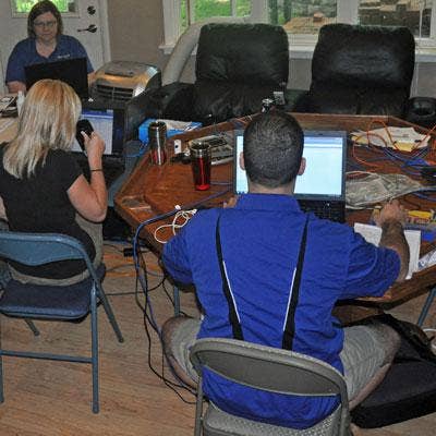 SNC Employees and other volunteers set up temporary offices in Motazedi's basement, where cables and wires snaked in every direction.