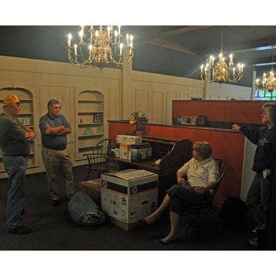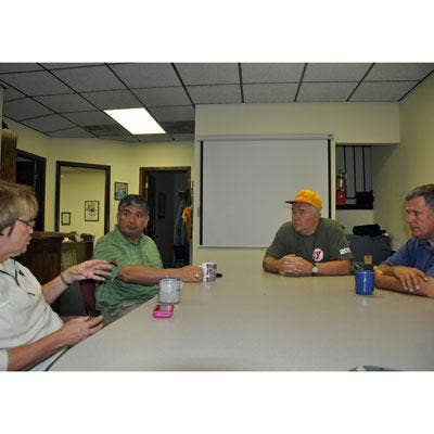 Executives from Heartland Technology Solutions, a Joplin, Mo.-based VAR, discuss their strategy for the day at 7 a.m., including what families and friends still need help salvaging personal belongings from the wreckage. The HTS office on Main Street is located about eight blocks from where the edge of the path of destruction. From left are Arlin Sorensen, CEO; Larry Hedin, vice president of sales and marketing; Jane Cage, COO; and Connie Arentson, president.