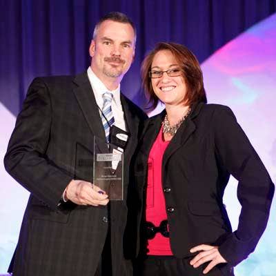 Moving on to enterprise networking, this industry-leading switch vendor provides "fabric in a box" technology that offers high density, low latency and energy efficiency. It eliminates the challenges and expense of energy-hungry, multibox and multitier solutions. Congratulations go to Extreme Networks for its BDX 8. Accepting was Greg Cross, Extreme Networks' director of public relations and Sandra Creek, the company's senior director of channels.
