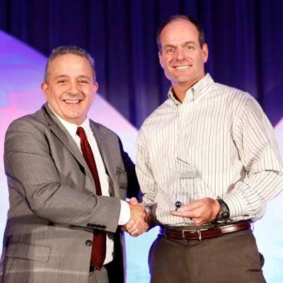 This year's winner in the handheld device category is an asset and inventory scanner that fits easily into a shirt pocket. It can be controlled wirelessly from an iPad, iPod Touch, iPhone or similar mobile device and even a PC. It weighs just 15 ounces, can easily read poorly printed or damaged bar codes and has a rechargeable lithium-ion battery to handle up to 5,000 scans on a single charge. This year's Tech Innovator award for handhelds went to the WWS100i from Wasp Barcode Technologies. Accepting for Wasp was Bryan Keepers, director of sales.