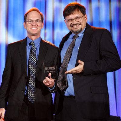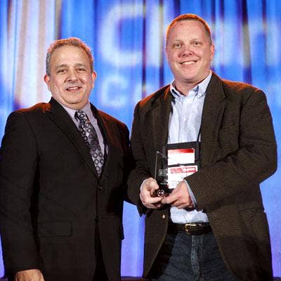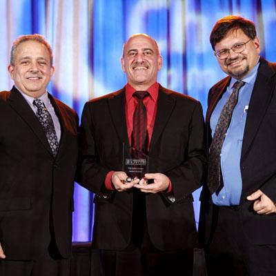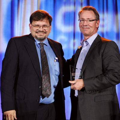 This year's winner in the Wireless Networking category -- the ZoneFlex 7055 from Ruckus -- impressed editors with a versatile device that combines dual-band Wi-Fi with a wireless and wired power-over-Ethernet switch with VLAN support and wireless meshing, plus a PBX pass-through port. Accepting for Ruckus was Ron Gill, vice president of enterprise sales for the Americas.