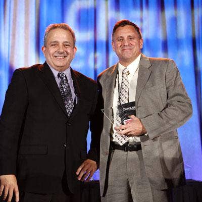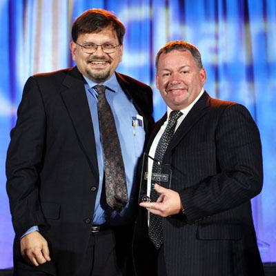 Enterprise Networking wasn't among Dell's core strengths until a key acquisition put it squarely in the arena. The Networking S-5000 unified storage switch is an innovative top-of-rack solution that addresses a problem common to many of today's highly converged networks: It allows LAN and SAN traffic to converge over a single 10-gigabit Ethernet connection regardless of protocol. This reduces the complexity of separate switches and simplifies migration to different or faster topologies. Accepting for Dell was Allen Arguijo, director of Dell U.S. channels and networking sales.