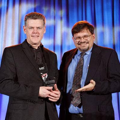 This year's winner in the Servers category had to think outside the box. Moonshot from Hewlett-Packard employs a series of low-cost, low-power nodes, each of which is itself a self-contained server that can be specialized for web hosting, storage services, high-density computing and other purposes. With scores of these server nodes in each 4.3U server chassis, the system also must -- and does -- integrate its own redundant network switching modules. All this, while using almost 90 percent less energy and 80 percent less space than conventional servers. Accepting for HP was Paul Santeler, vice president and general manager of the Hyperscale Business Unit of HP Servers.