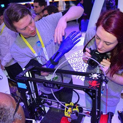 It's one thing to display a prosthetic arm that was created with a 3-D printer. It's another thing to demo that arm along with the 3-D printer in action printing a backup arm. Now add in that the person is opening and closing the prosthetic arm's hand using Intel built-in robotics. Well-played, Intel. Very impressive.