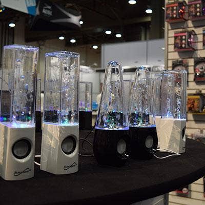 SuperSonic's dancing water speakers were another attention grabber here at CES. Not quite up to par with the Bellagio's famous fountains, these speakers shoot water up in the air that dances to the beat of the music being played. Under the water, jets are colored by lights so the streams of water are different colors, making them look pretty cool as they dance to the music.