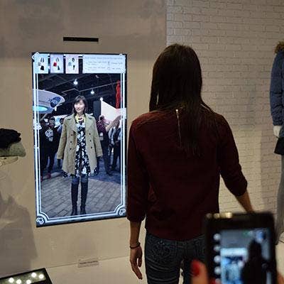 A long line of folks formed a waiting line to virtually try on new outfits and looks at the Toshiba booth. Users mixed and matched different clothes and accessories, which would be handy for any bedroom closet, but sorry fellas, Toshiba's virtual fitting room is for women only.