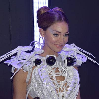 Intel's CES booth did not lack in the strange department this year. Intel had tech gadgets galore from robots, 3-D printed prosthetic arms and futuristic high-tech fashion. In this case, a model was wearing a robotic dress that had mechanical legs around the shoulders similar to that of the robot spiders crawling around at her feet. Robotic spider legs at her shoulders could rise up off her shoulders and extend themselves, pointing at those who stopped and stared for what made for a spooky tech scene.