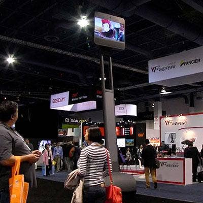 State-of-the art mobile telepresence is standardizing around a computer monitor mounted about 5 feet high on a remote-control wheelbase with a video camera on top. We spotted nearly a dozen variations of these telepresence bots zooming around CES that allowed virtual attendees to move about on the show floor from afar.