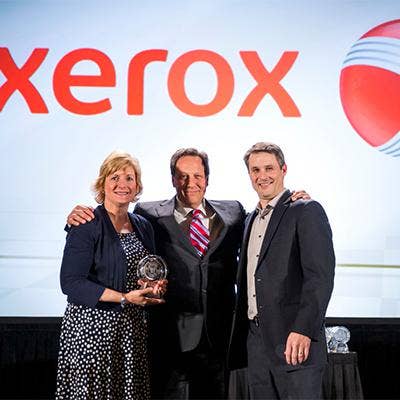 Charlene Fischer, Xerox vice president of US field sales, and Tom Gall, Xerox's director of channel marketing, accepted the award from Robert Faletra.