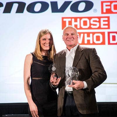 Lenovo's Alan Andrade, director of North American commercial and channel strategy, accepted the award from Sarah Kuranda.