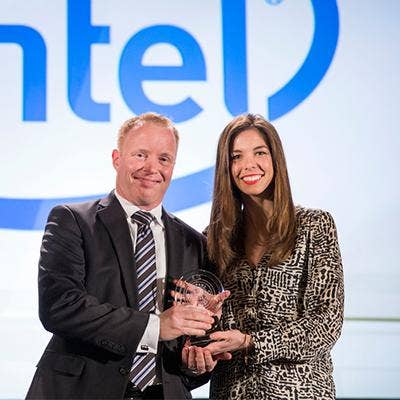 Accepting the award for Intel was Todd Garrigues, director of North American reseller channel programs, from CRN Video Editor Meghan Ottolini.