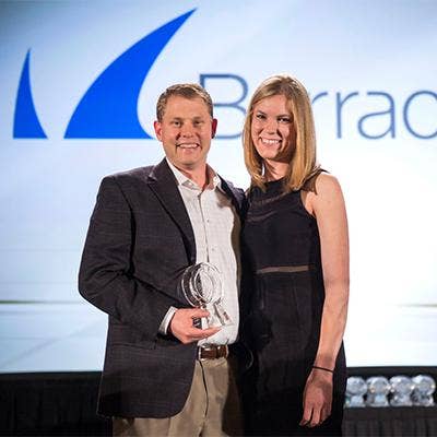 Brian Babineau, Barracuda's vice president for product and channel marketing, accepted the award from CRN Associate Editor Sarah Kuranda.