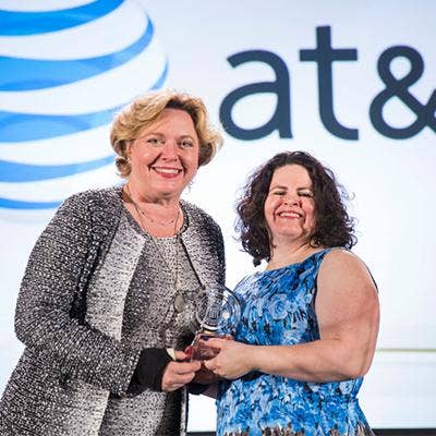 Brooks McCorcle, president of AT&T partner solutions, accepted the award from Jennifer Follett.