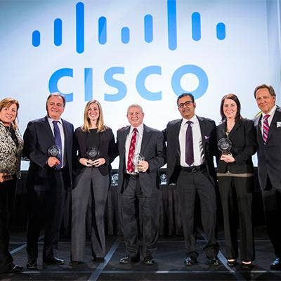 Raja Sundaram, vice president of Worldwide Channels and Alliances for Cisco, accepted the awards from Robert Faletra.