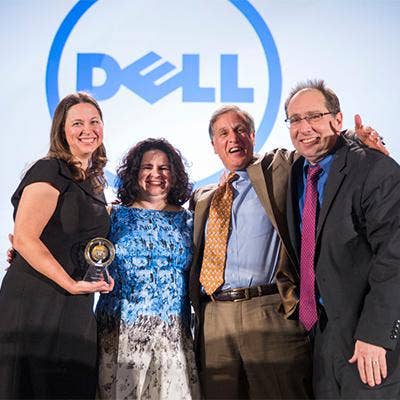 Frank Vitagliano (second from left), vice president of Dell's global channel, and Mary Catherine Wilson, director of Dell's channel marketing for North America, accepted the award from Jennifer Follett and Steve Burke.