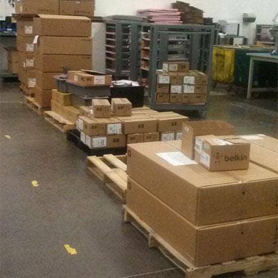 The GSC has a dedicated inbound receiving area for fast and efficient receipt of products. The receiving area takes products pulled by Avnet's channel partners and separates cartons, scans for serial numbers and screens for defects. This allow Avnet's production team to focus on adding value to the software and hardware.
