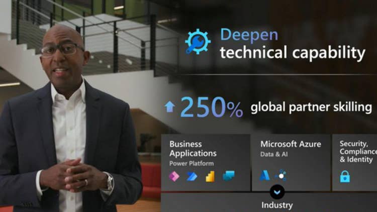 “Our customers are increasingly technical—and to stay relevant, we need to match that same level of tech intensity,” he said. “This is why we’re making investments to deepen your technical capability. We’re increasing our FY22 investment in skilling by more than 250 percent. This includes deep technical training through things like ‘cloud weeks,’ virtual hands-on labs and digital technical skilling content that’s on-demand. This is all aimed at helping you build capability by solution area and by industry.”
