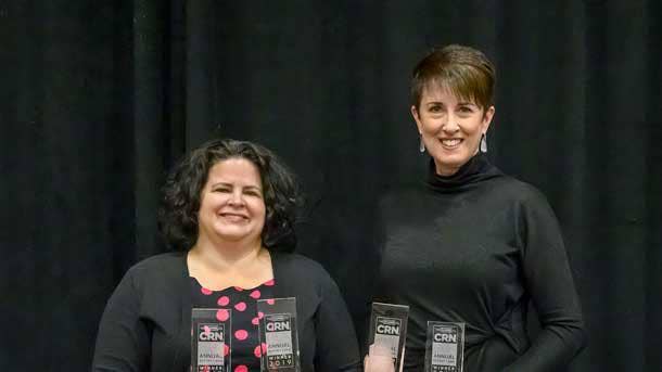 Debbie Purfurst (right), Vice President of Channel Sales and Distribution, accepted the awards from Jennifer Follett, CRN Executive Editor.