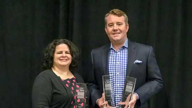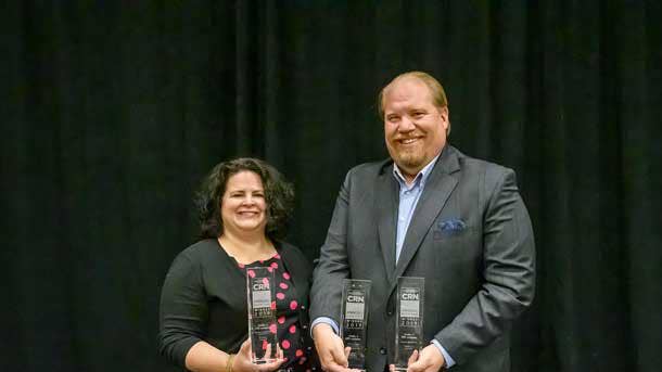 Jon Bove, Vice President of Channel Sales, accepted the awards from Jennifer Follett, CRN Executive Editor.