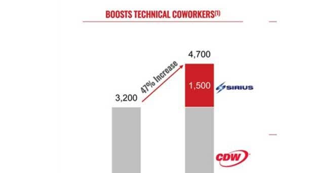“Specifically, Sirius brings 1,500 highly certified technical coworkers with deep technical expertise,” she said. “This would increase CDW’s total technical coworkers by over 45 percent to 4,700 strong—a meaningful increase in today’s competitive market for IT talent.”