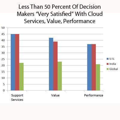 Less than half of decision makers surveyed said they were very satisfied with support, value or performance of their cloud providers, according to the survey.