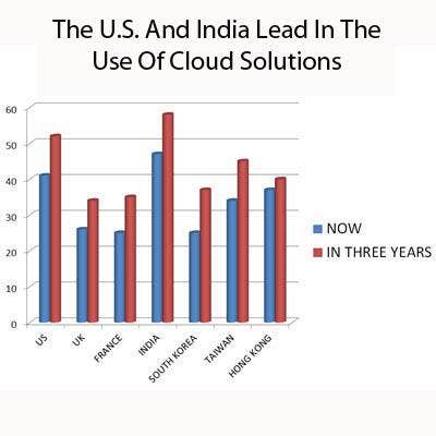 India had the highest level of cloud adoption, with 47 percent of organizations on board and 58 percent considering the move.