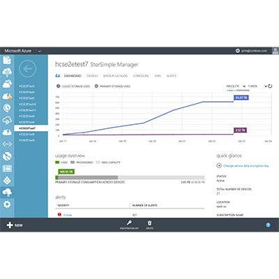 Microsoft's StorSimple family of hybrid storage arrays, which stemmed from that company's 2012 acquisition of StorSimple, combines on-premise tiered hard drive and SSD capacity with the Microsoft Azure cloud to provide primary storage, archive, and disaster recovery. They support Windows, Hyper-V, VMware and Linux servers over iSCSI connections, AES-256 encryption, automated off-site data protection, and data retention policies. The flagship StorSimple 8000 series hybrid storage arrays also support Microsoft Azure StorSimple Manager that consolidates all operating parameters and status updates for all appliances in a data center. It also supports the Microsoft Azure StorSimple Virtual Appliance.
