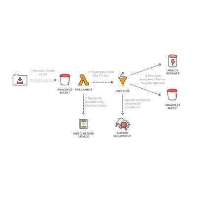 Fully-managed extract, transform, and load (ETL) service AWS Glue is another offering that deals with big data and data processing. Users can employ the service to prepare and load their data stored on the AWS cloud for analytics, and create and run an ETL job within the AWS Management Console. AWS Glue works by discovering data and storing the associated metadata in the AWS Glue Data Catalog. This data is then immediately searchable, queryable, and available for ETL jobs.