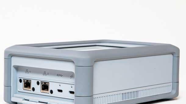 Measuring 9 inches long, 6 inches wide and 3 inches deep, AWS Snowcone’s gray enclosure reflects infrared heat and is dust-tight and water- and wind-resistant, with a rubberized coating around the port door that seals when closed. The enclosure meets stringent standards for ruggedization, free-fall shock—it tolerates falls up to 3.8 feet—and operational vibration, according to AWS.