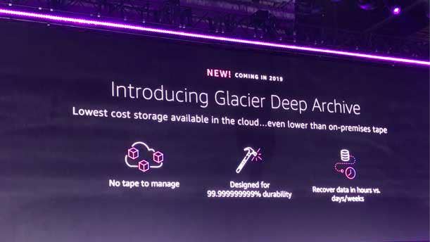 What has changed over the last several years is you see this incredible linear acceleration that companies are wanting to make use of data like they never have before. A lot of this data isn’t accessed very often, but even if you don’t access it often, there is a lot of learning in that historic data that you want to reside where all the rest of your data is so you can run analytics and machine learning on that data. Glacier Deep Archive is going to allow you to not have to manage a tape library at a lower price point than you can do on-premises and where it can reside with the rest of your data, which I think is really compelling.