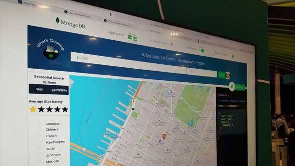 Cloud document database service MongoDB came to re:Invent to showcase its Atlas cloud-based database, which includes the Search feature used to create a search index for data in a single call to the application programming interface.