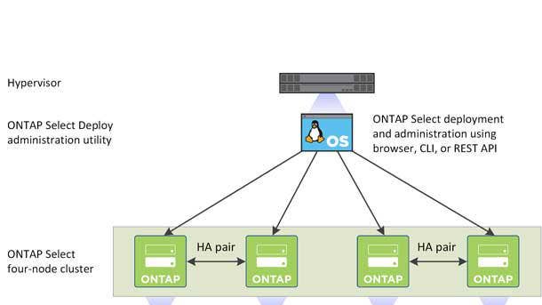 With Ontap Select, NetApp offers software-defined storage that can be deployed on commodity hardware and provides capabilities for data protection and resilience—as well as simplified management and movement of data across hybrid environments. It leverages NetApp’s Ontap 9 storage operating system and benefits from Snapshot copies and remote backup to protect data, and uses NetApp Volume Encryption for data at rest. Ontap Select can co-locate with application virtual machines to optimize hardware use and allows users to consolidate network file system, common internet file system and internet small computer system interface applications and workloads on local and remote hosts.