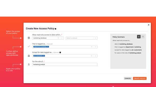 Data lakes can quickly become legal swamps if care isn’t taken to ensure they meet data security and compliance requirements. To tackle that, Okera offers the Okera Active Data Access Platform, a data lake security and governance system. Okera Policy Builder, an addition to the Okera Data Access Platform, provides the tools that data stewards and data governance teams use to create and manage detailed data access control policies that dictate who can access what data.