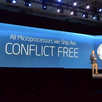 On a final note, Krzanich announced that all Intel microprocessors will now be free of conflict minerals. Intel's CEO talked about the violence in the Democratic Republic of the Congo and how many of the minerals used in computers and consumer electronics are mined from the region. Krzanich said Intel wanted to make sure the minerals it was using for its products weren't inadvertently funding the bloodshed in the DRC, and he invited other companies in the technology industry to also make the pledge against conflict minerals.