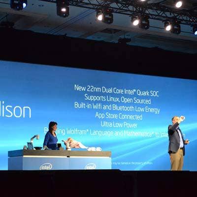 The big headliner was Intel's new microprocessor, dubbed Edison, which was designed specifically for wearable and smart devices. The new dual-core system-on-a-chip (SoC) comes with built in Wi-Fi and Bluetooth support and is about the size of an SD card.