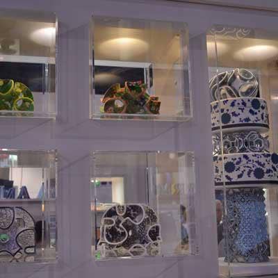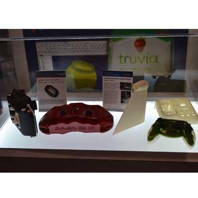 No, this isn't a museum. This is the view of 3D Systems' booth at the Las Vegas Convention Center. And these aren't priceless sculptures, vases and works of art from bygone eras. They're plastic items that were spun in from some of 3D Systems' printers.