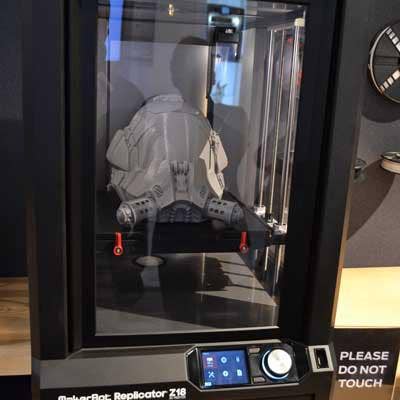 No, it's not a "Star Wars" costume (or even a "Spaceballs" prop for that matter). It's an original design of a space helmet constructed by MakerBot's Replicator Z18. The Z18, which will launch this spring for $6,499, has a glass chamber with extra room and stability for creating larger objects.