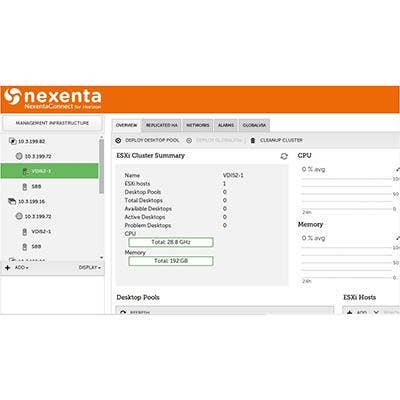 Nexenta Systems claims to have solved one of the major complications of VDI implementation -- the storage bottleneck. NexentaConnect 3.0 for VMware Horizon and Citrix XenDesktop is a software-defined storage solution that the company SAID can accelerate storage performance by as much as 10 times, thereby increasing the user density of an installation. The tool also streamlines VDI deployment, automates VDI storage management and is billed as a "storage-in-a-box" solution for any supported platform. A recent update adds pass-through support for the VMware GPU, faster desktop pool restoration from backup and the ability to import desktop pools from Horizon View.