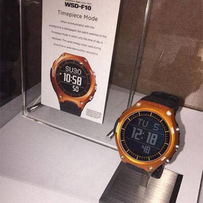 The Casio Outdoor Watch will be available in April, with color options of red, green, orange or black, and will cost around $500.