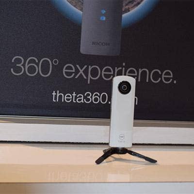 Ricoh is showing off its third-generation 360-degree camera, the Theta S. As the name suggests, the Theta allows you to capture 360-degree photos and videos. The Theta S is made up of two half-spherical lenses that shoot 190-degree images, each at 14 megapixels or full HD. New to this revision of the product is longer battery life (up to 25 minutes), HD video support and the ability to capture video at 30 fps. The Theta is perfect for capturing 360-degree video for playback on VR goggles and costs $350.