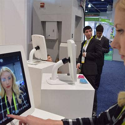 Modiface was showing off an augmented reality mirror that allows you to change your look by using settings at the bottom of a screen. You can simulate makeup and skin-care looks, apply anti-aging treatments, whiten teeth and change the color of your eyes -- for starters.