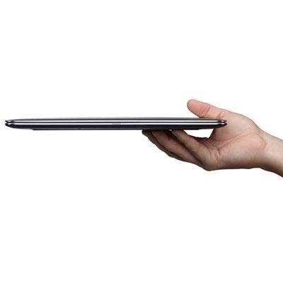 Despite the i7 processor, which requires a fan, the Yoga 900 still manages to be thin (0.59 inches) and fairly light (2.8 pounds). The XPS 13 is just a bit thicker at 0.6 inches, though its non-touch version is lighter than the Yoga 900, at 2.7 pounds. The touch version is slightly heavier, at 2.9 pounds.
