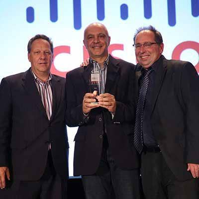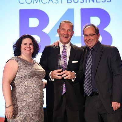 Shown here accepting the award from CRN Executive Editor Jennifer Follett and Editor, News Steve Burke, is Craig Schlagbaum, Comcast's vice president of Indirect Channels.