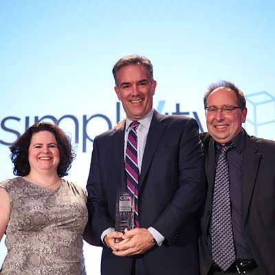 SimpliVity VP of Global Channel Sales George Hope is seen here accepting the award.