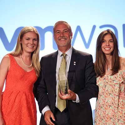 VMware VP of Americas Partner Organization Frank Rauch hit the stage to accept the award from Sarah Kuranda and Meghan Ottolini.